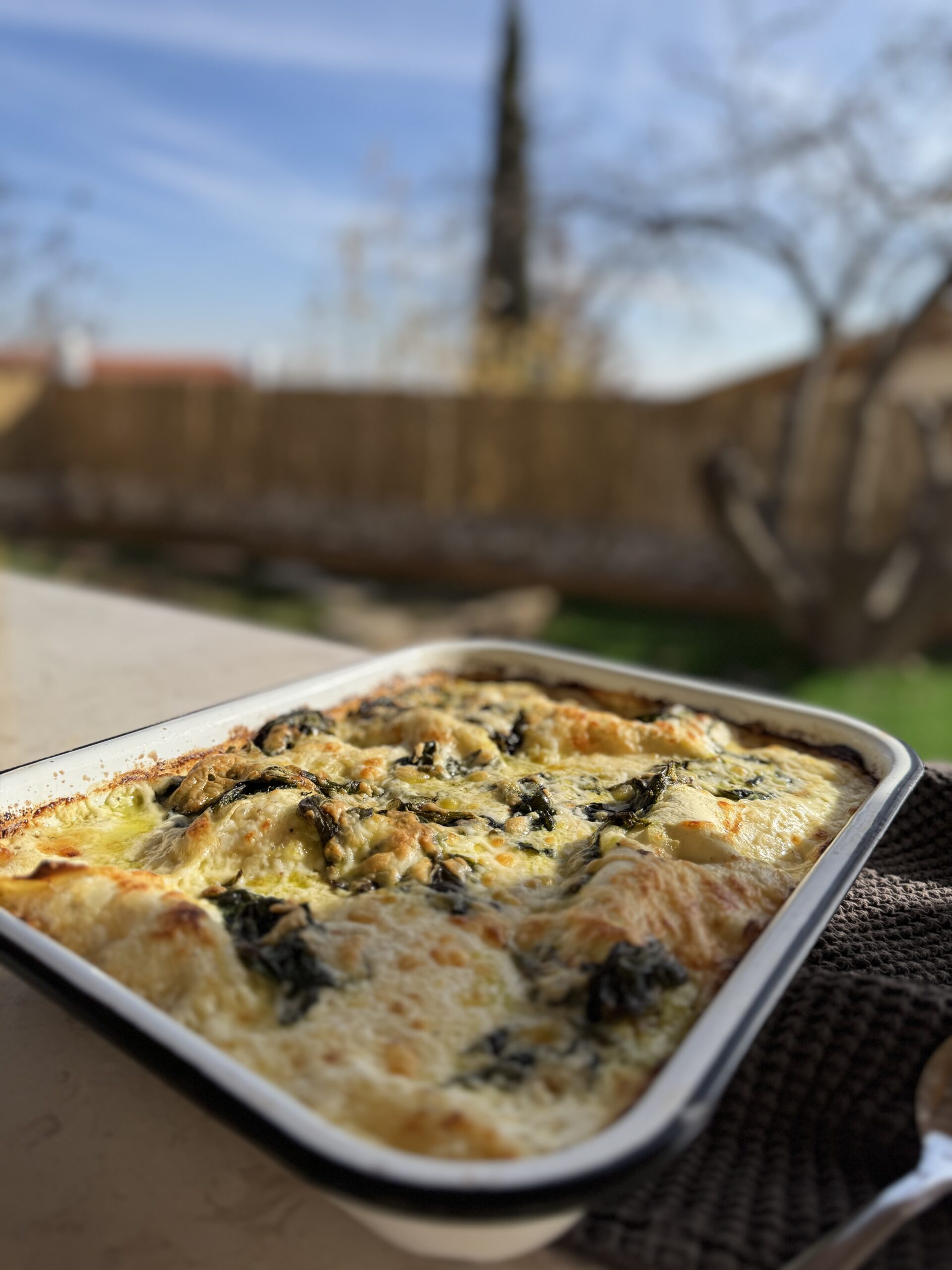 מגישים את הלזניה חמה לצד סלט טרי. בתאבון.