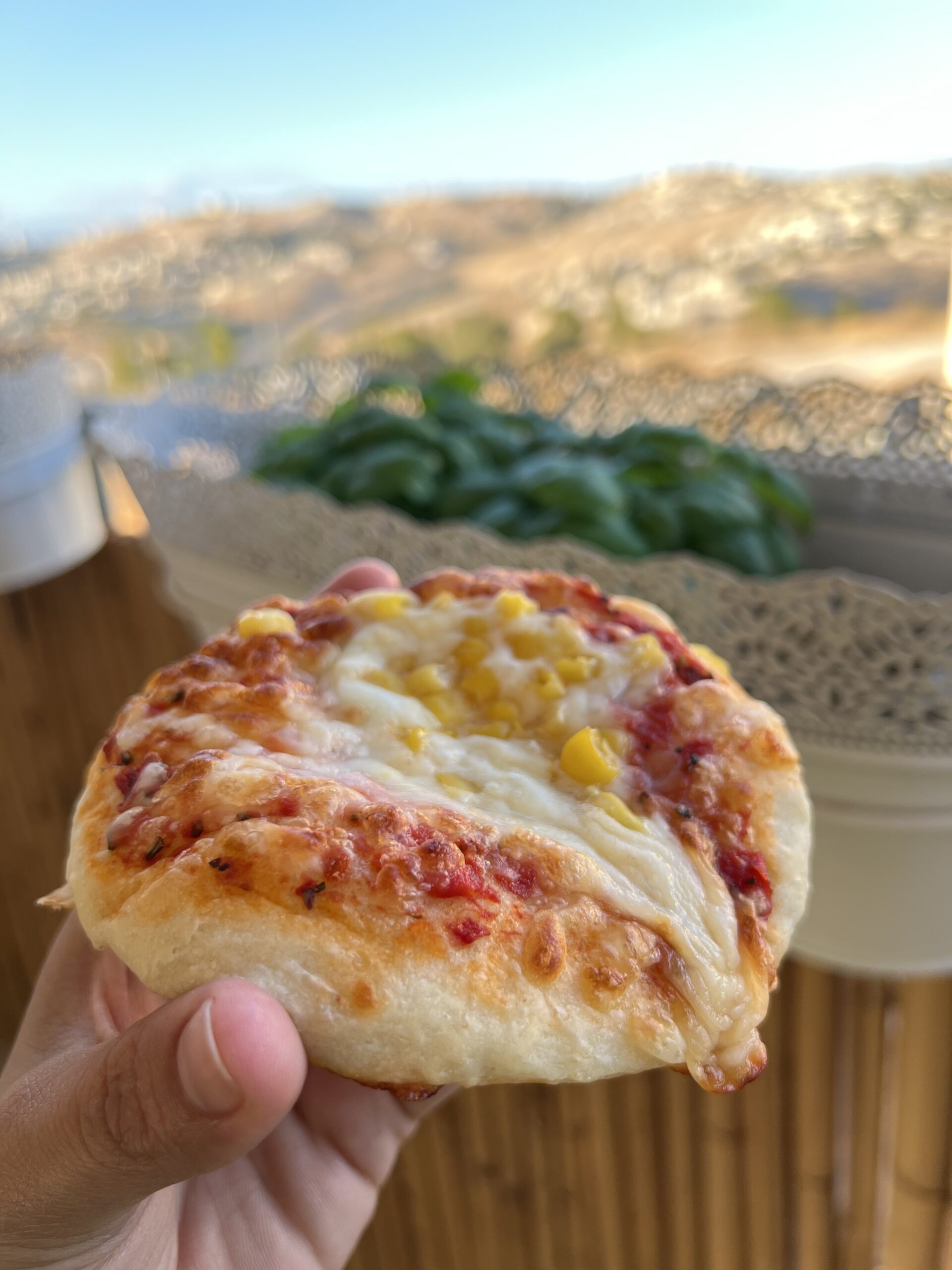 לאחר ההתפחה של הבצק, יש לשמן את הידים וליצור עיגולים בגודל כדור טניס ולהניח על נייר אפיה בתבנית, לשטח את הבצק בעזרת הידים וברכז העיגול להניח כפית מהרוטב, מעל לפזר גבינה צהובה מגורדת בנדיבות ולהוסיף תוספות שאוהבים